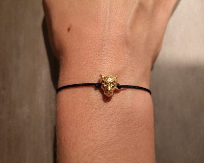 Dit armbandje is gemaakt van zwart satijndraad. Er is de keuze uit een gouden of zilveren panter bedel.