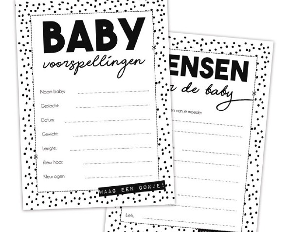 Steeds vaker worden er hier ook in Nederland babyshowers georganiseerd. Organiseer jij een babyshower voor bijvoorbeeld je beste vriendin of je zus? Hier horen natuurlijk cadeautjes, spelletjes en lekkere hapjes bij. Daarnaast mogen we natuurlijk de babyvoorspellingen niet vergeten! Hier staan leuke vragen op die de gasten kunnen beantwoorden.