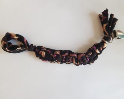 # Geknoopt speenkoord is gemaakt van t-shirt yarn en standaard afgewerkt met een metalen clip.