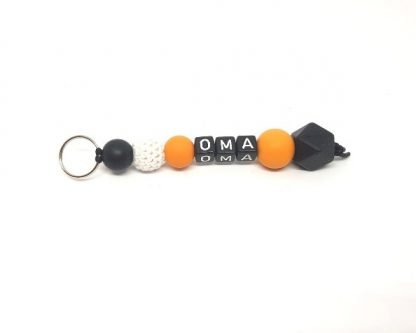 Deze gepersonaliseerde sleutelhanger is erg leuk om cadeau te geven als er een kindje op komst is! Bijvoorbeeld met Tante of Oma als tekst. De naam kan je zelf kiezen! Vul dit in bij het veld ‘Naam’. Er is de keuze uit witte siliconen, zwarte acryl of houten letterkralen. Deze sleutelhanger met naam staat ook erg leuk aan de schooltas of luiertas van je kindje. Zo maak je het tasje herkenbaar!