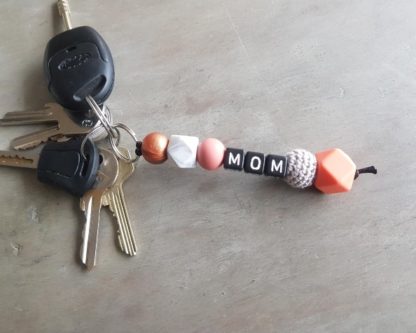 Deze sleutelhanger met naam is erg leuk om cadeau te geven als er een kindje op komst is! Bijvoorbeeld met Tante of Oma als tekst.. De naam kan je zelf kiezen! Vul dit in bij het veld ‘Naam’. Er is de keuze uit witte siliconen, zwarte acryl of houten letterkralen. Deze sleutelhanger met naam staat ook erg leuk aan de schooltas of luiertas van je kindje. Zo maak je het tasje herkenbaar!