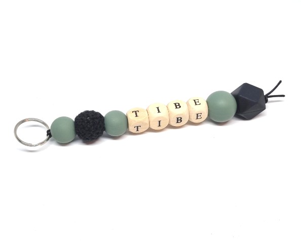De sleutelhanger met naam kan je gemakkelijk overal aan bevestigen door het ringetje wat eraan zit. De siliconen kralen zijn gemakkelijk schoon te maken met een vochtig doekje.